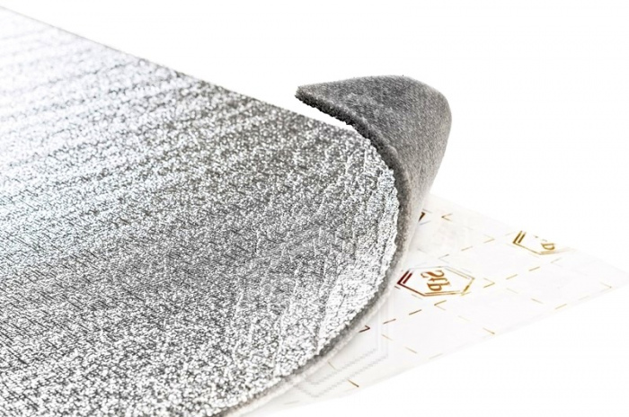 Акцент (accent lm ks) – хороший самоклеящийся звукопоглощающий материал на основе вспененного полиэтилена, с частичным нарушением закрытоячеистой структуры (иглопробивка). Выпускается с металлизированной пленкой и без пленки. Пленка обеспечивает дополнительный теплоотражающий эффект, а также препятствует попаданию влаги. Материал обладает также теплозащитными свойствами. Выпускается с толщиной материала: