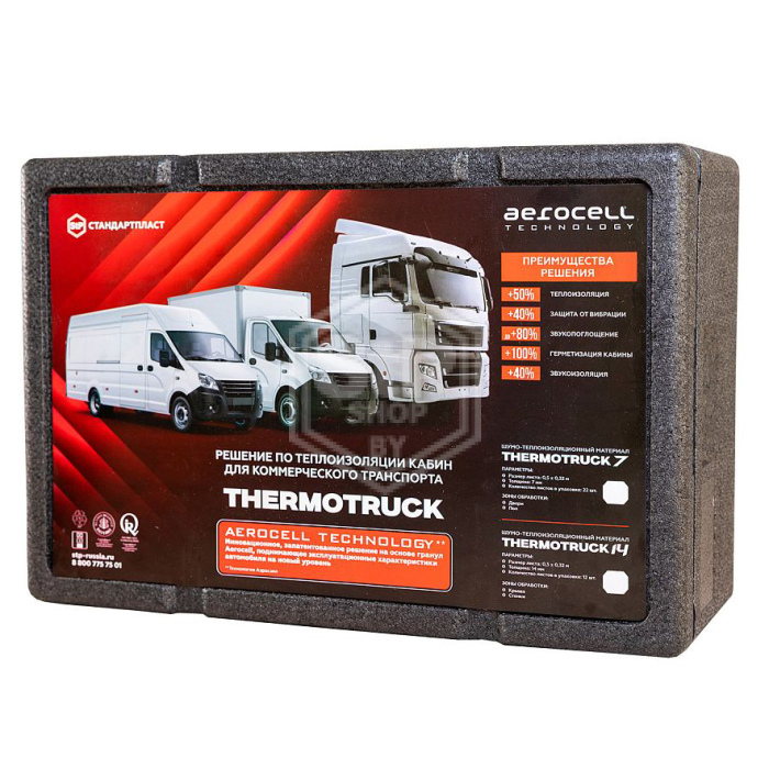 Thermotruck — инновационное решение для тепло-звукоизоляции кабин коммерческого транспорта, разработанное с использованием на уникальной технологии Aerocell Technology. Этот материал обеспечивает значительное улучшение эксплуатационных характеристик транспортного средства за счет эффективной тепло- и звукоизоляции, а также защиты от вибраций и герметизации кабины.