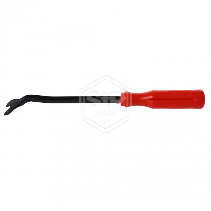 Инструмент выполнен в форме рычага позволяющего легко разбирать внутренний интерьер автомобиля без риска его повредить. Что не мало важно съемник для клипс StP оснащен ручкой из материала предотвращающему проскальзывание.